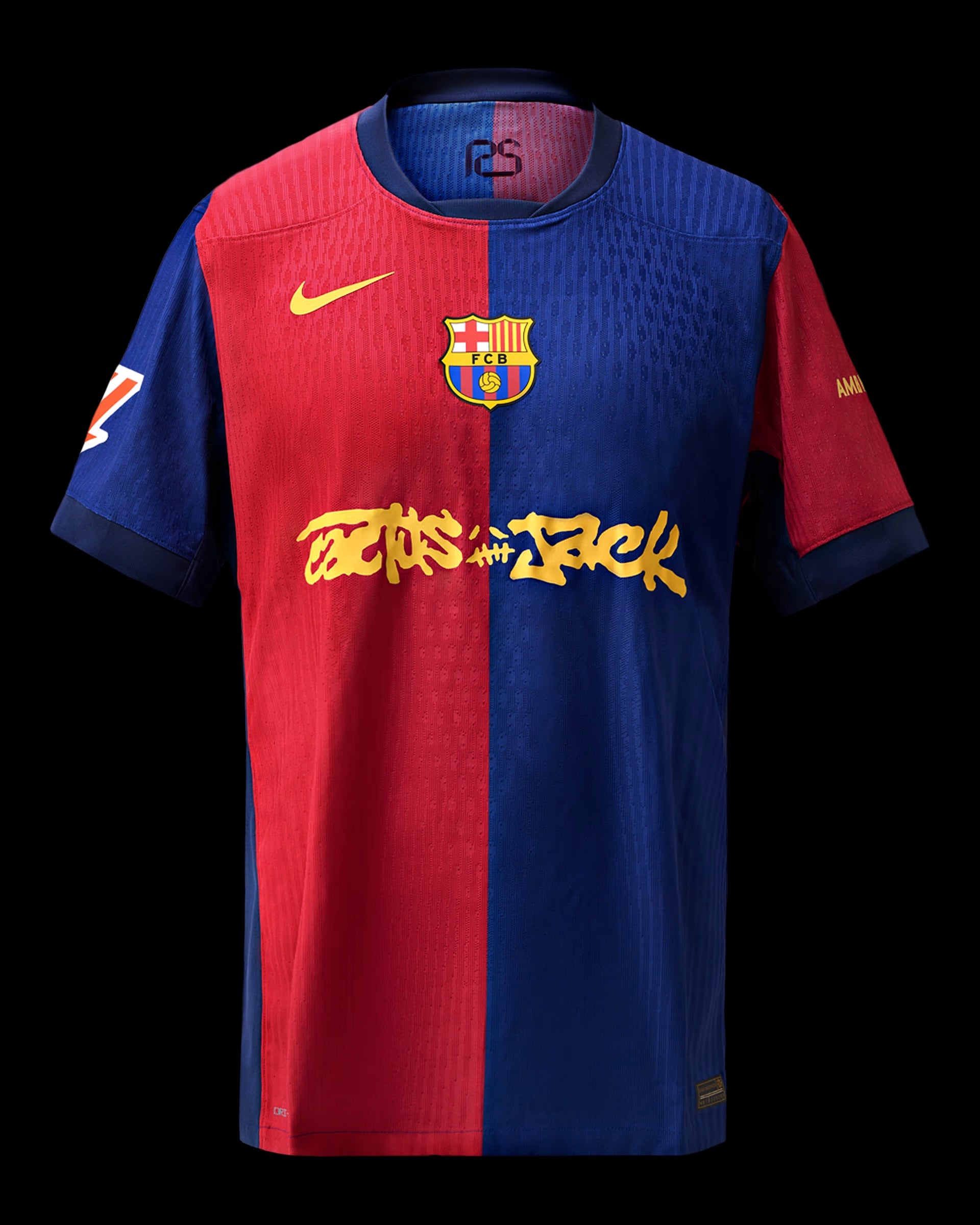 Celebrate 125 years of F.C. Barcelona with a shirt that takes us back to when it all started. Inspired by the club's first kit, a half-and-half split of Barça's iconic colours returns with special-edition Cactus Jack graphics. Other elements, like a hidden mark and a unique neckline, pay tribute to this special anniversary.