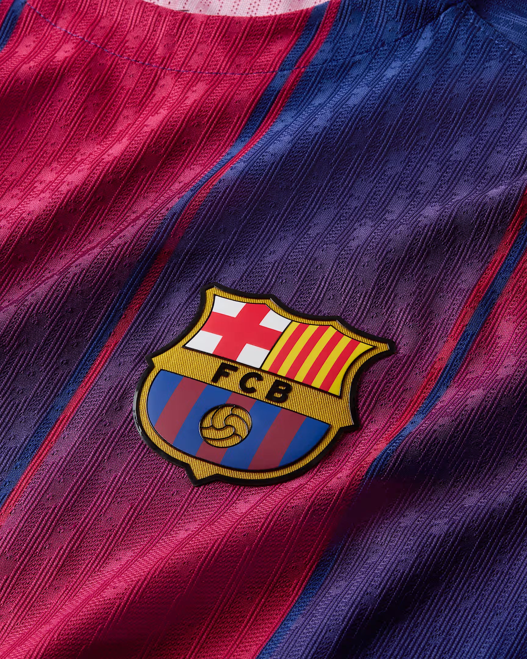FC Barcelona's 2025/26 home jersey updates one of the most recognizable looks in soccer. Their iconic Blaugrana is fused with movement-inspired graphics and bright, energetic accents to celebrate their fans' unity and devotion to the club.