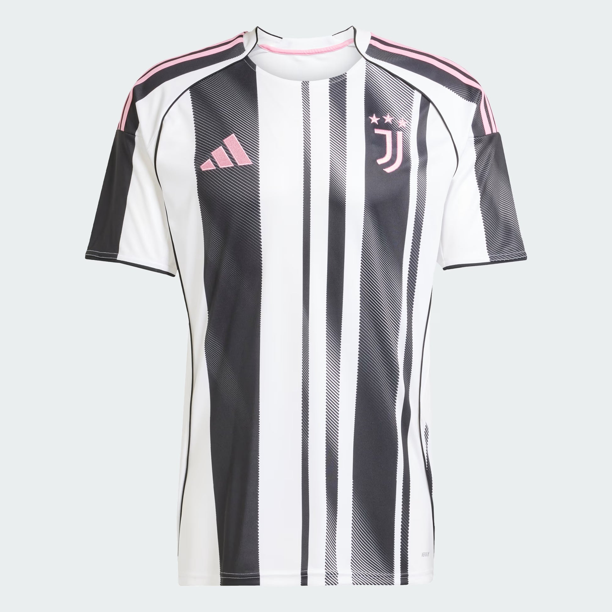 Football tradition with a twist. This adidas Juventus home jersey plays with the club's famous stripes to produce a design that really catches the eye. Created to keep fans comfortable, it teams moisture-managing AEROREADY with smooth interlock fabric. Finished in the club's timeless pink colours, an embroidered badge flashes your fandom.